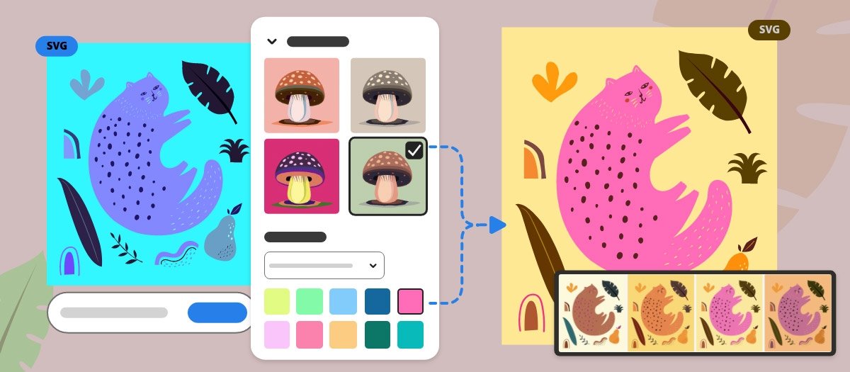 Cannot keep the entire and do minor recoloring edits. Only generate new colors for the entire vector.