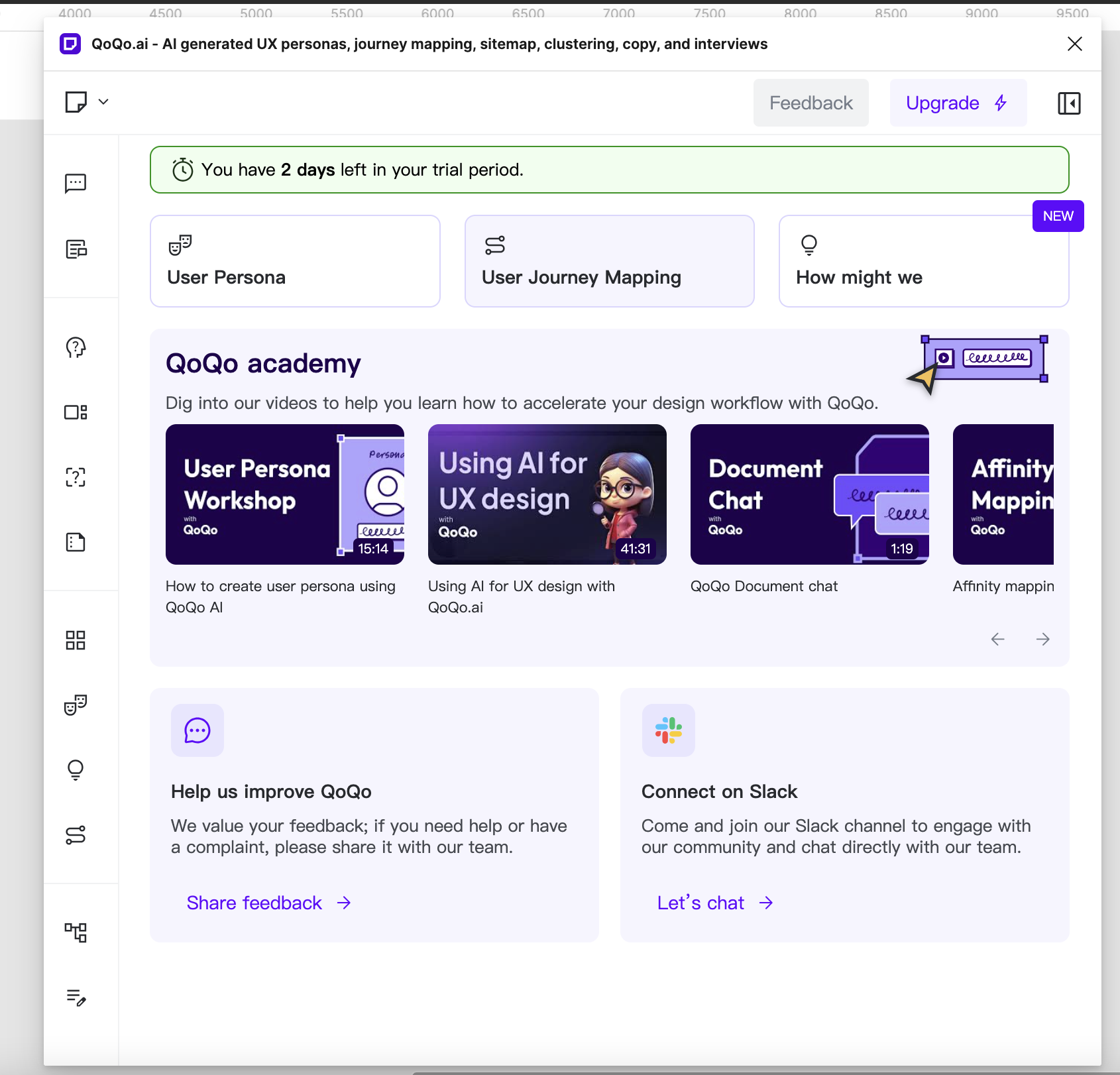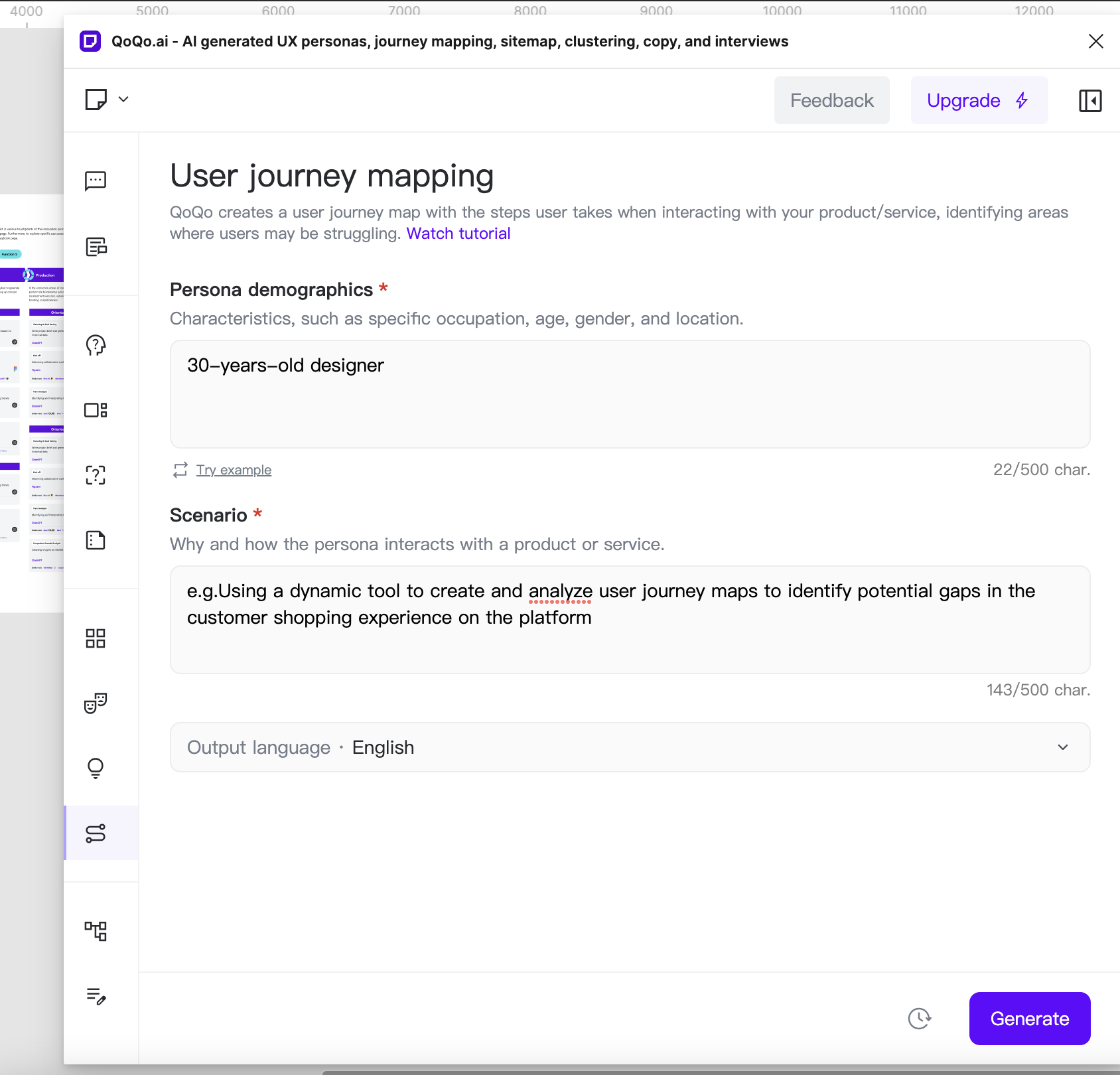 QoQo creates a user journey map with the steps user takes when interacting with your product/service, identifying areas where users may be struggling