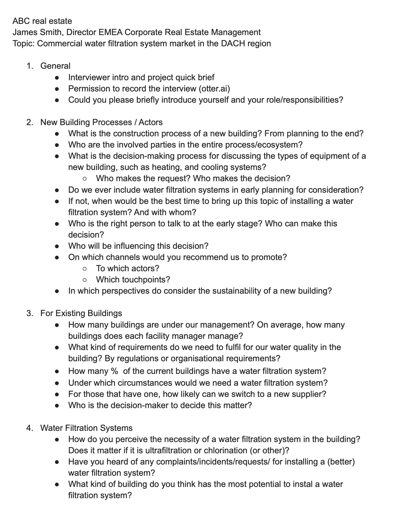 Prepare a list of relevant topics/questions (see example below) that help you get necessary information addressing your purpose