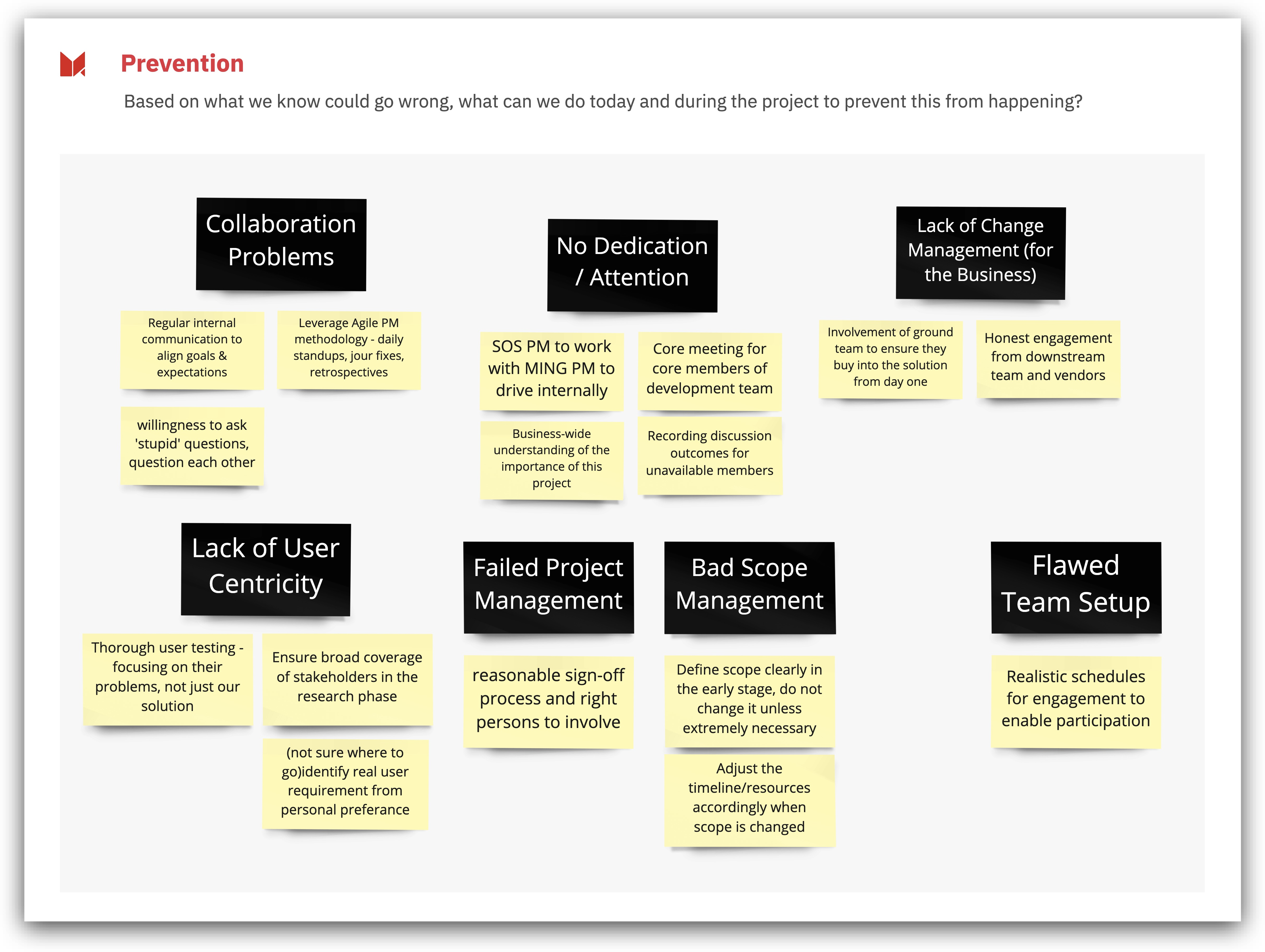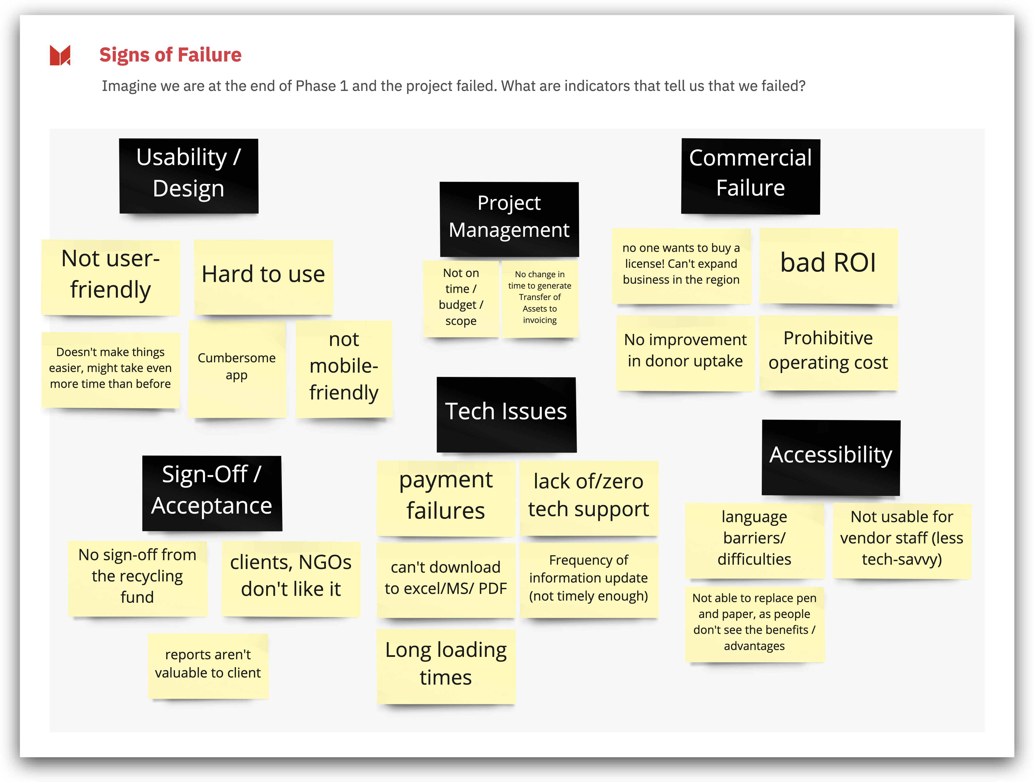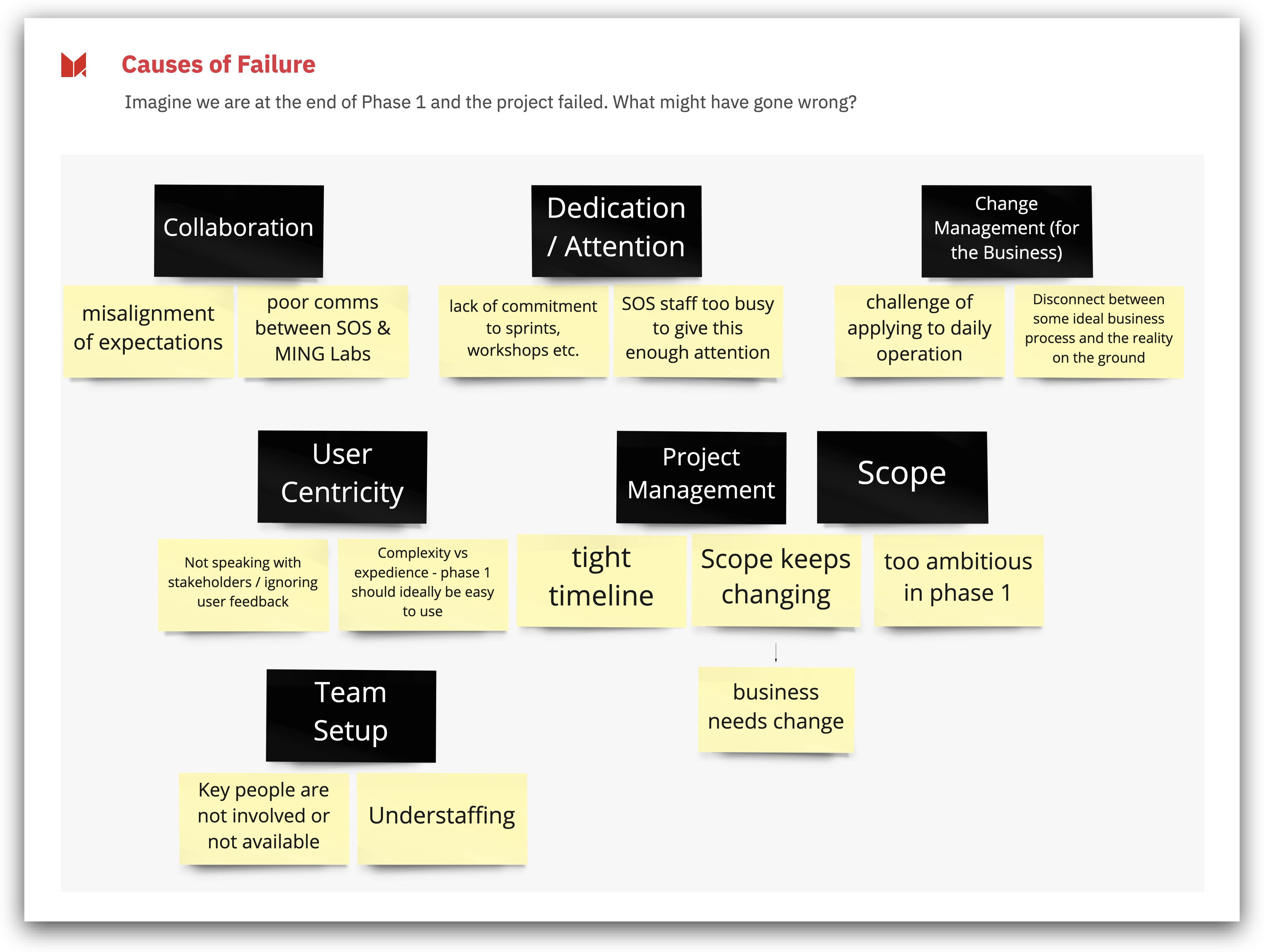Last but not least, for this first part of the workshop, it can be helpful to try and predict what might go wrong and find resolutions for how we avoid those unhappy paths. This is especially important for complex or lengthy projects, where much uncertainty can creep up and lead the team astray.