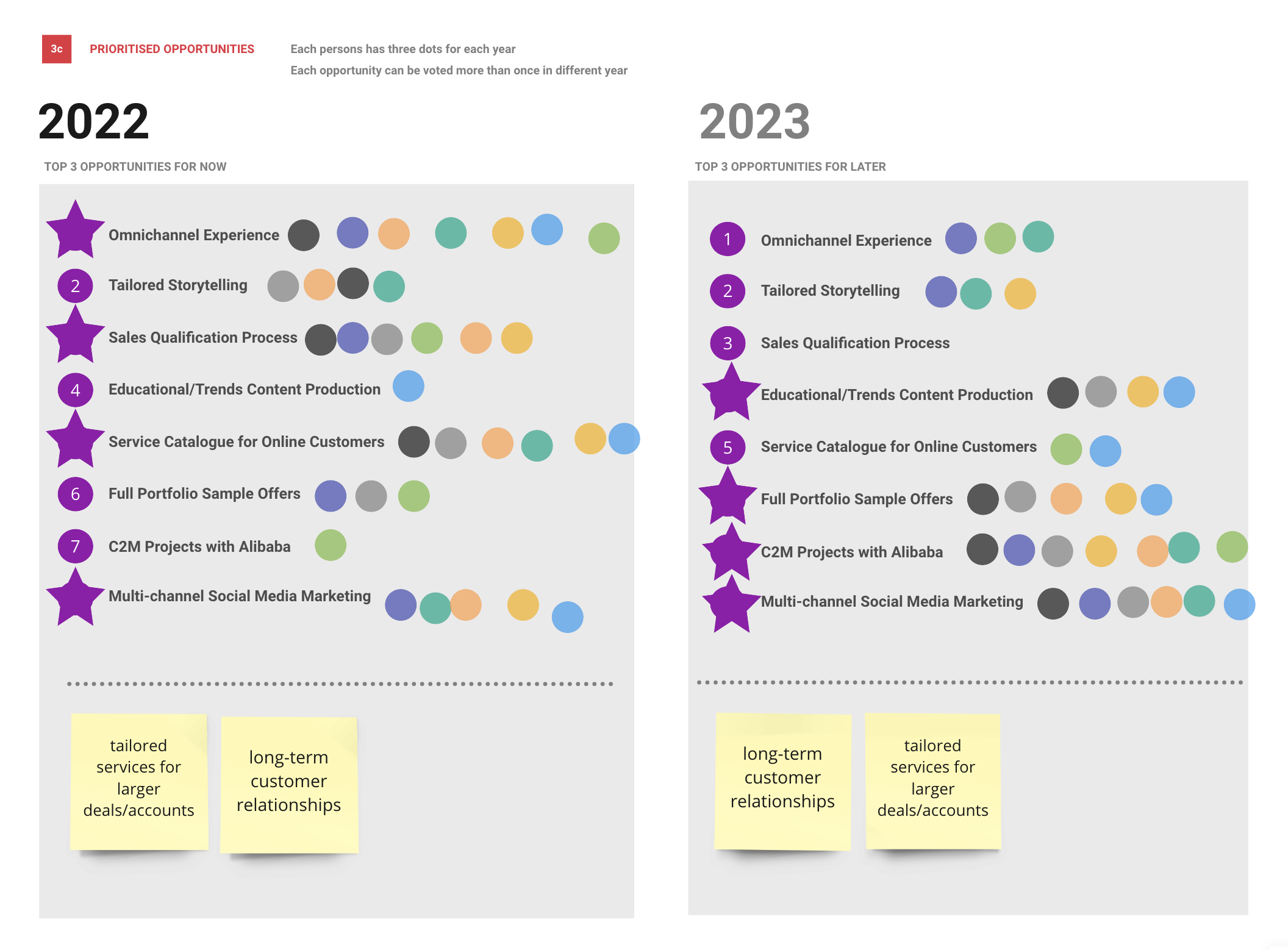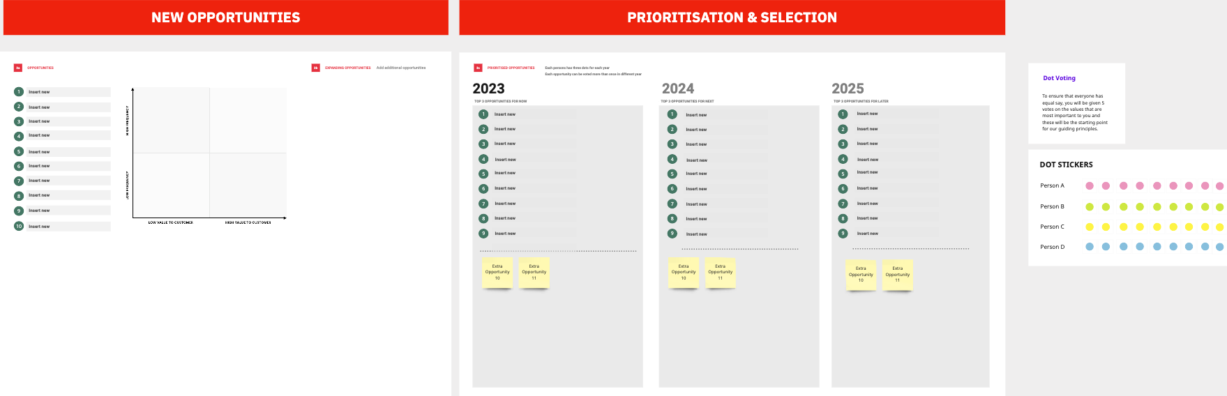 Organise the voting exercise, and each stakeholder selects the top opportunities we should seek now, next, and later.