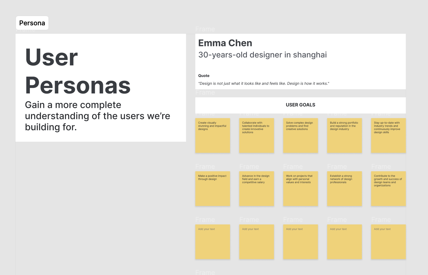 Remember that Personas represent only one customer you have talked to. Instead, they represent “typical” customers - they combine characteristics of several customers you have spoken to.