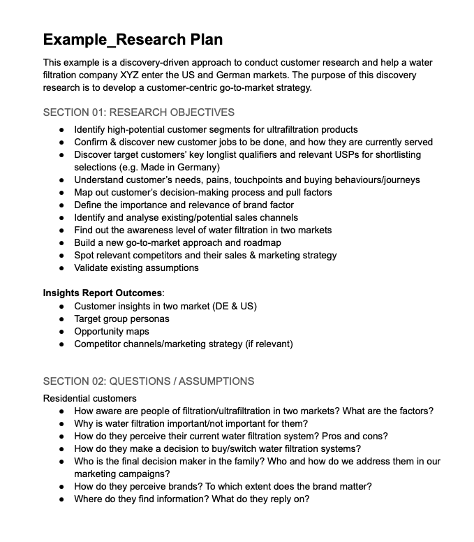 Questions / Assumptions (what you want to learn or the assumptions you want to validate in this research)