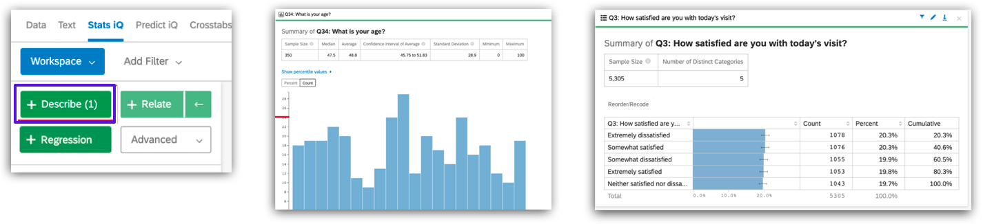 Select one or multiple variables > click “Describe”