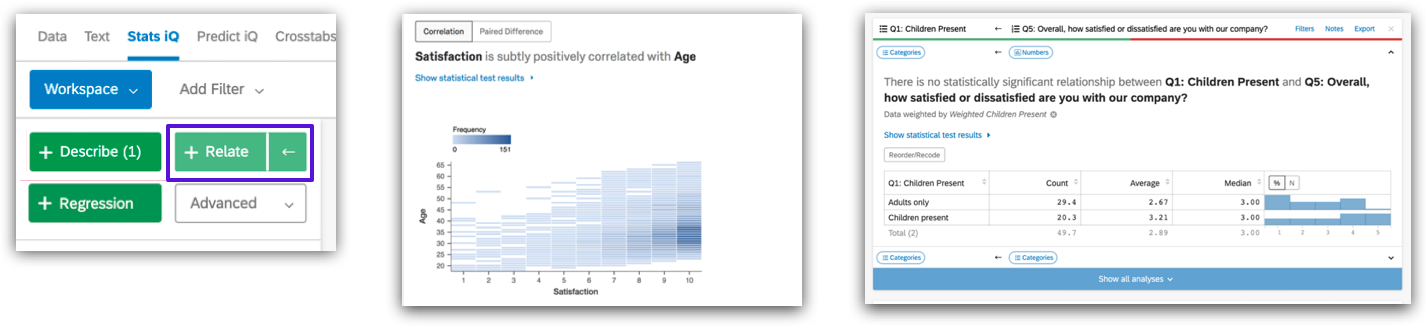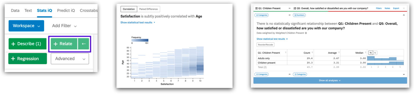 analysis, Stats iQ will choose appropriate statistical methods for different data relationships and interpret the results in an easy-to-understand language, highlighting the most significant relationships.