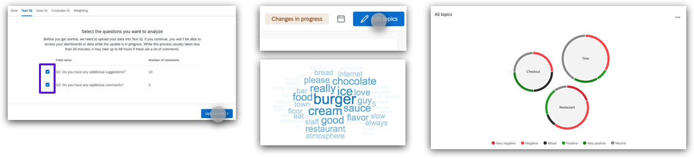 Click the checkboxes to select the open text fields you want to upload to Text iQ > click “Upload data”