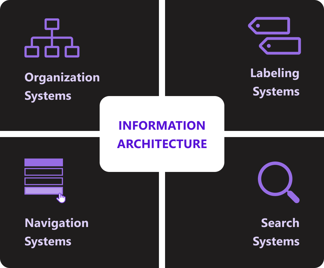 How you categorise and structure Information into groups or categories, such as by topic, date, or audience. They help users predict where they can find certain Information and understand the relationships between different pieces of Information. Good organisation systems should be based on the users' needs and tasks and be intuitive and logical.