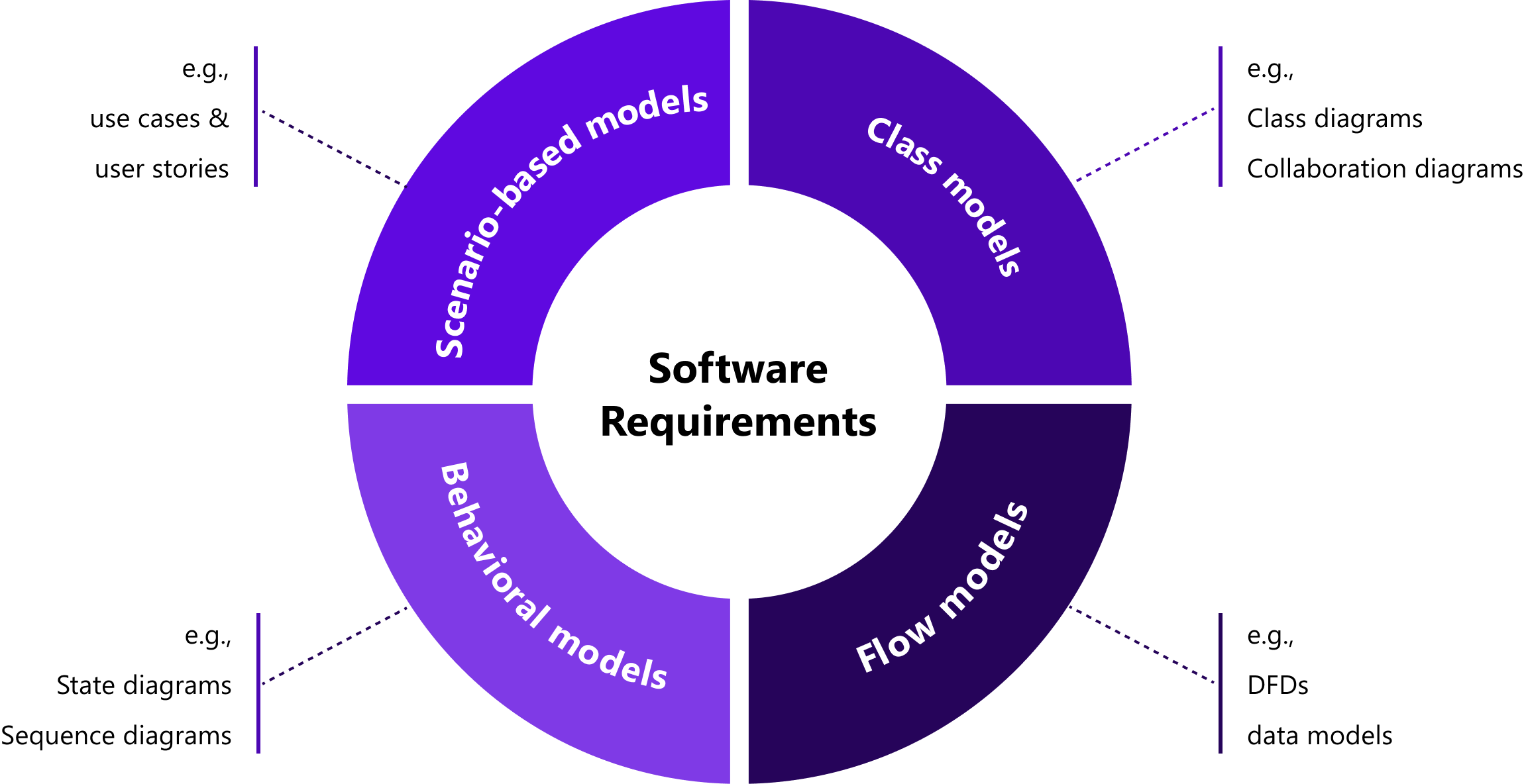 There is a wide variety of the output of the requirements modelling, depending on the complexity of the project and the audience that would consume the information, the team could decide in what form the requirement should be presented.