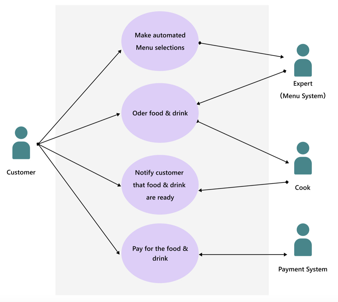 3. Using the four elements above, create a use case diagram with the identified actors and use cases.