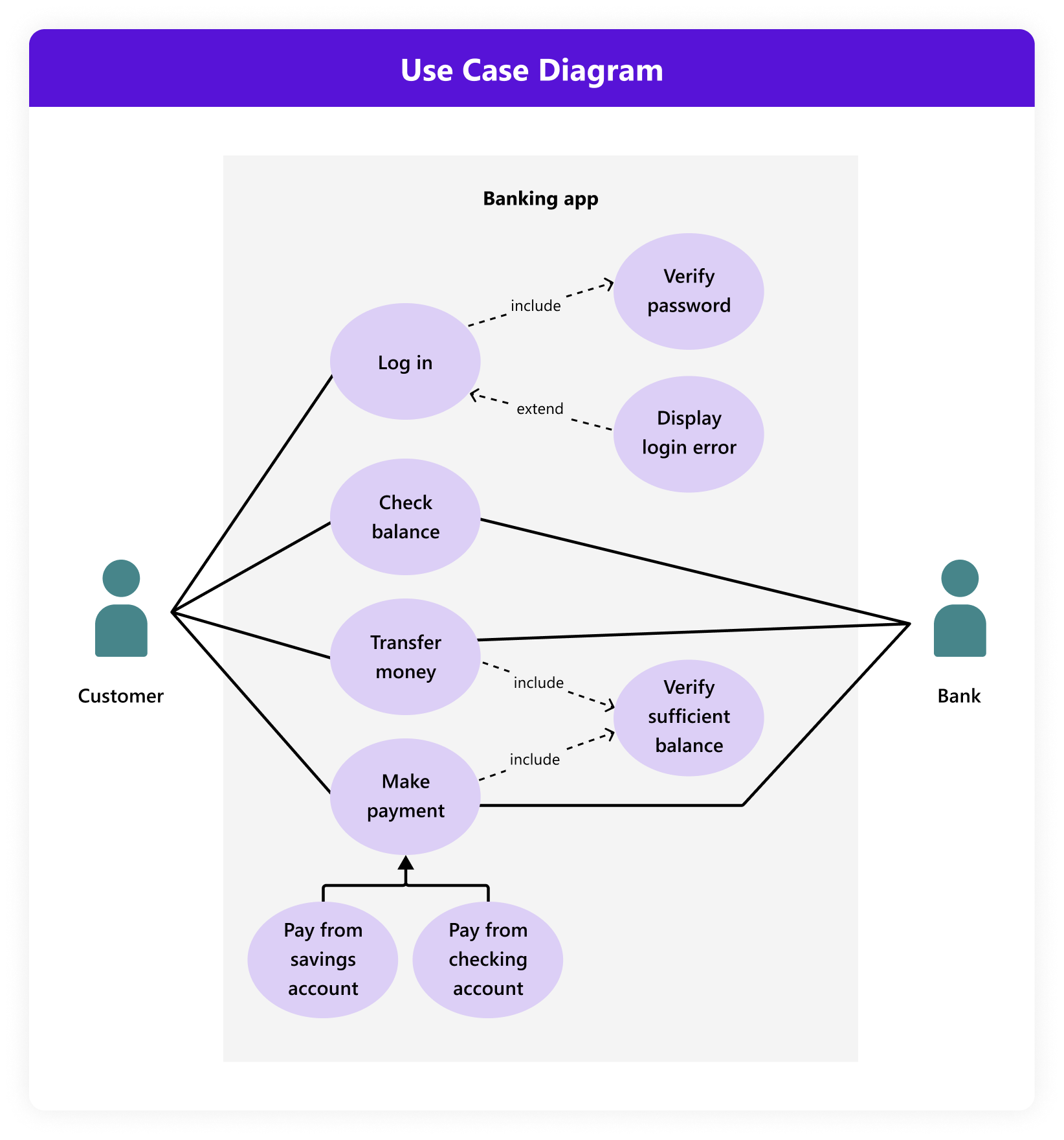 2. Actors - An actor is anyone who acts on the system to achieve a goal. They can be a type of person, an organisation, or an external system (e.g., banking app customer, bank).