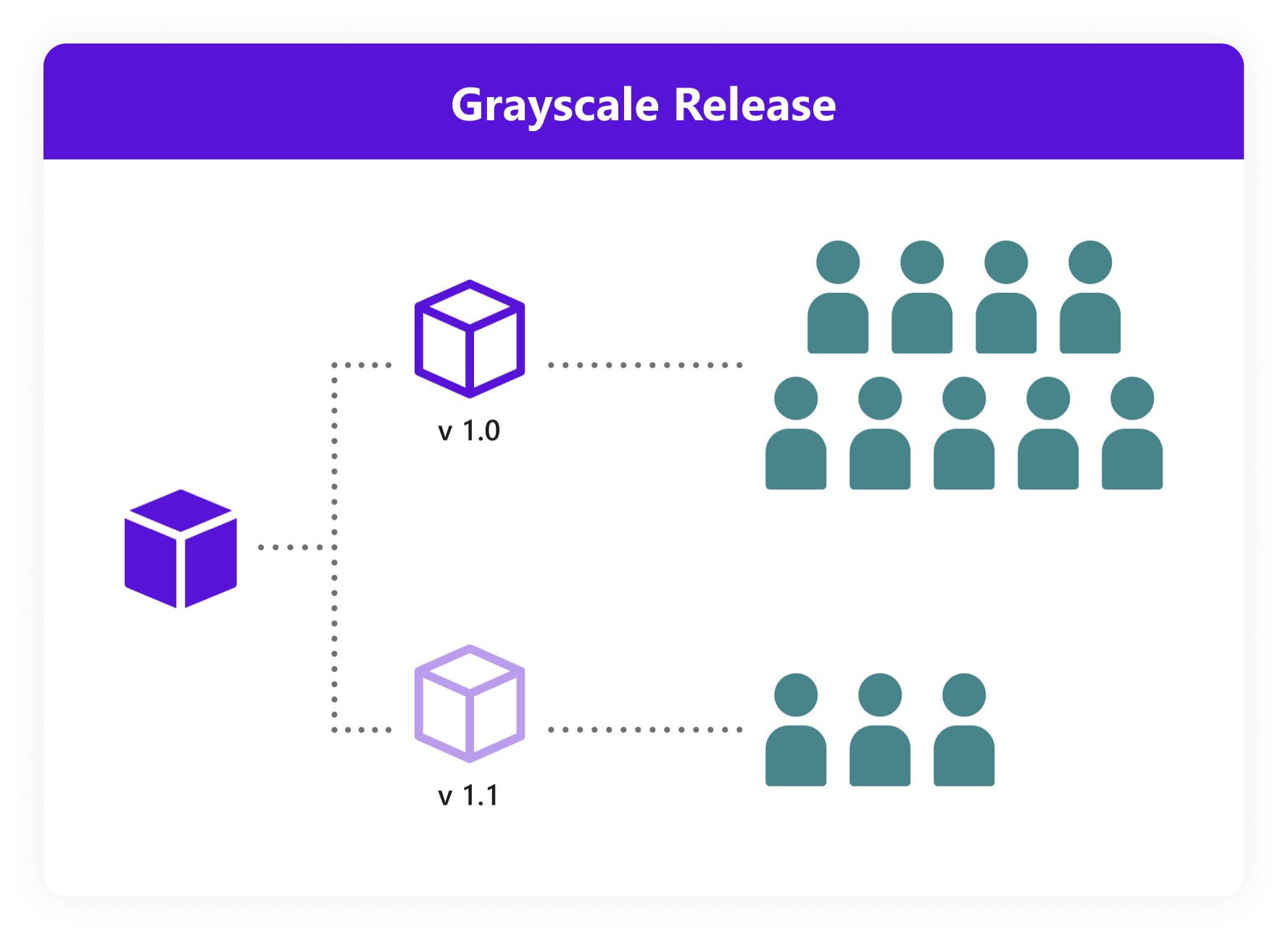 Grayscale release (also known as Canary Release) refers to a release process involving a smooth transition. Gray is between white and black. Only a small group of users will be affected by this release, while most users are still using the stable version. After assessing the update's performance, if the result is good enough, all the users will gradually be 100% switched to the new version. That’s the end of a grayscale release.