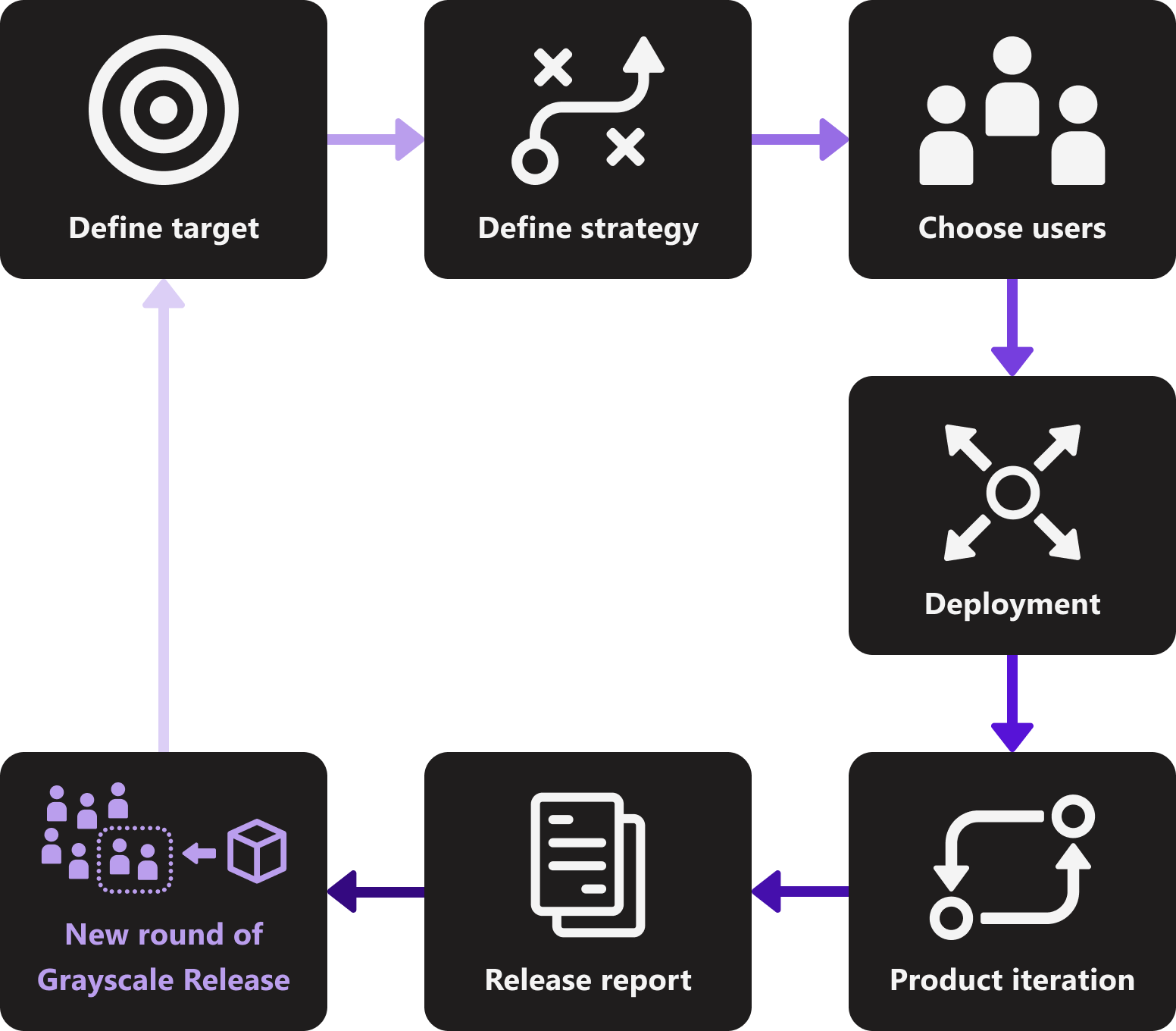 After a product is live, the grayscale release method can be adopted when there are updates that the production team is not confident enough to open for all users.