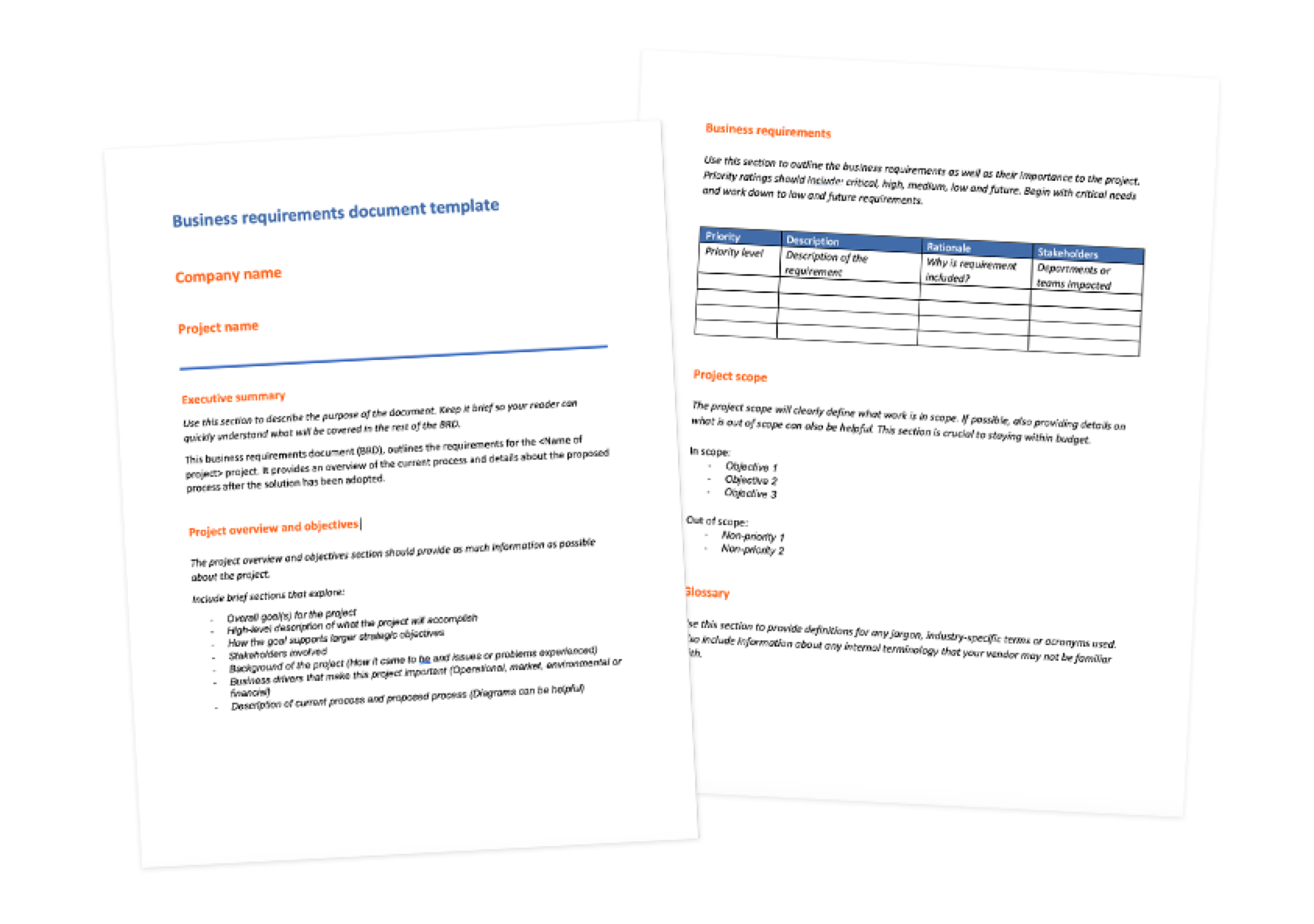 While there is no fixed structure that a BRD needs to follow, it generally includes the following sections and topics: