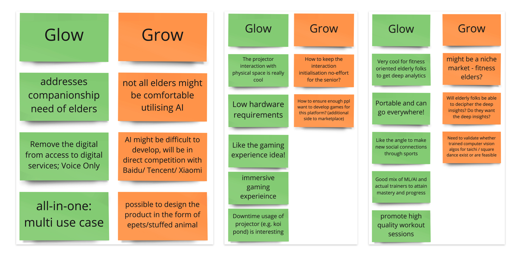 Glow and Grow is a method where the concept owner pitches the concept to the team or friendly stakeholders and receives two types of feedback - What makes the concept Glow (i.e., what is great? What should be kept?)? What could they Grow (i.e., what is not great yet? What needs to improve?)? Based on that, they can iterate.