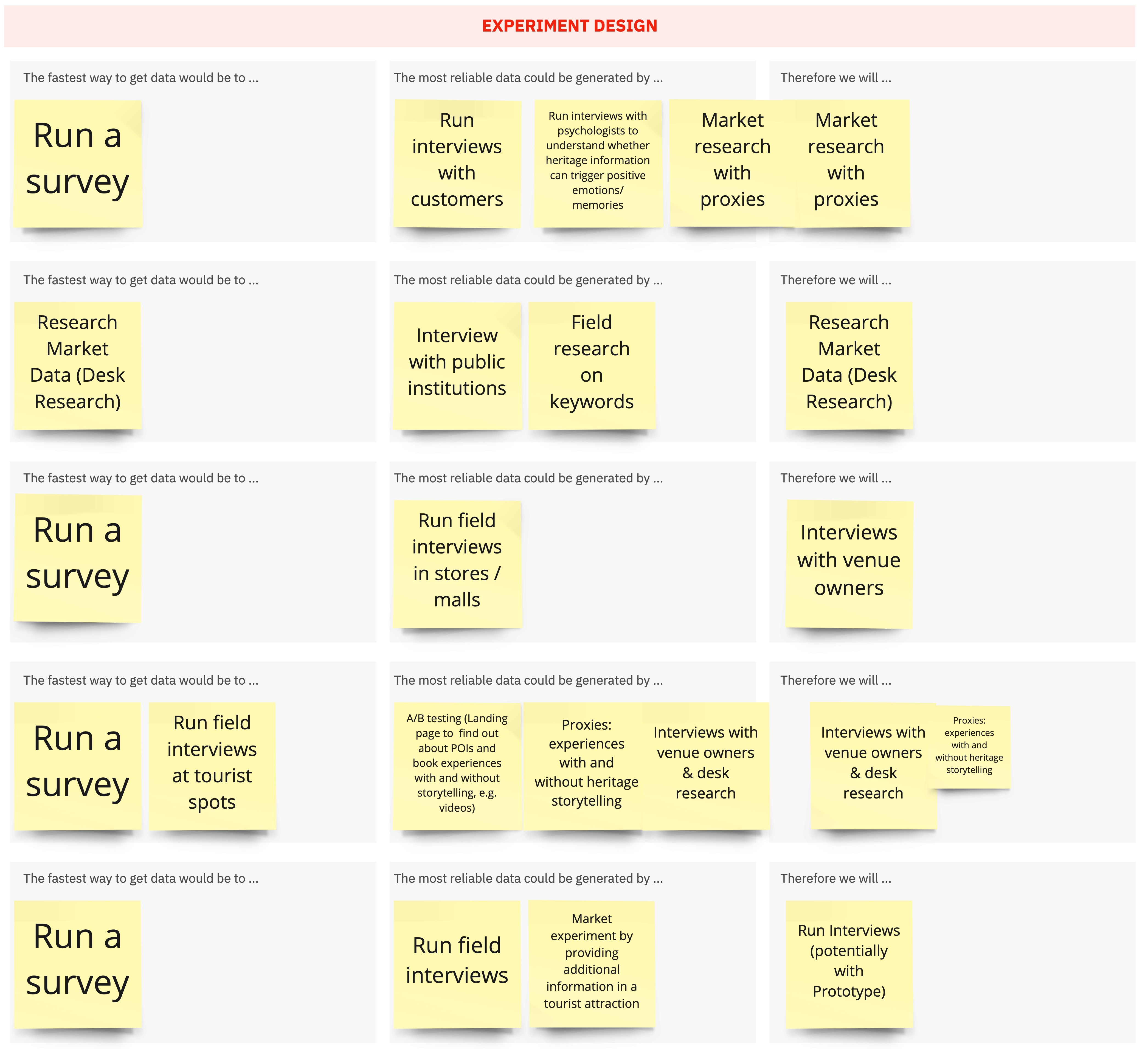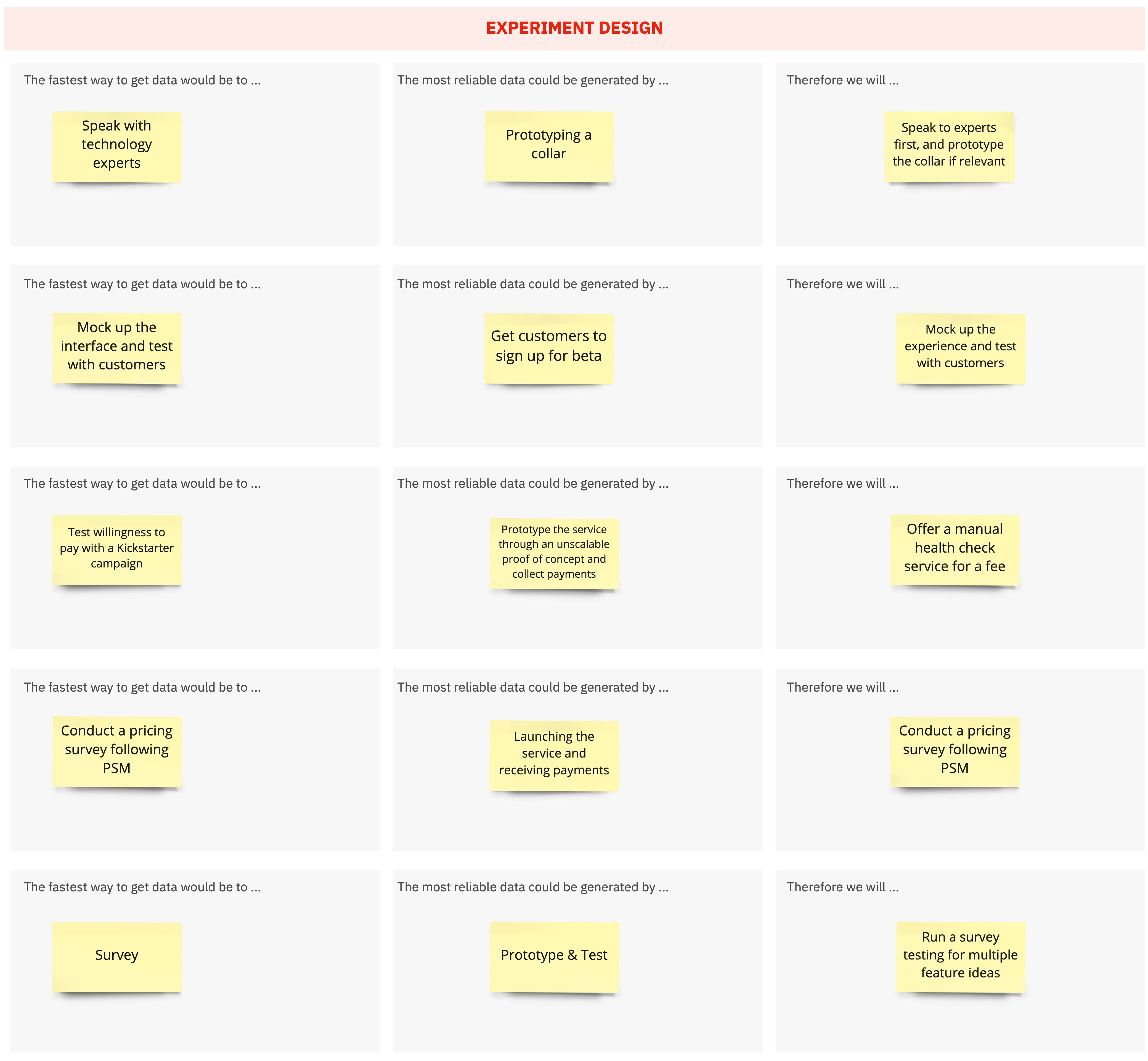 and then decide on the most suitable experiment for our Validation phase.