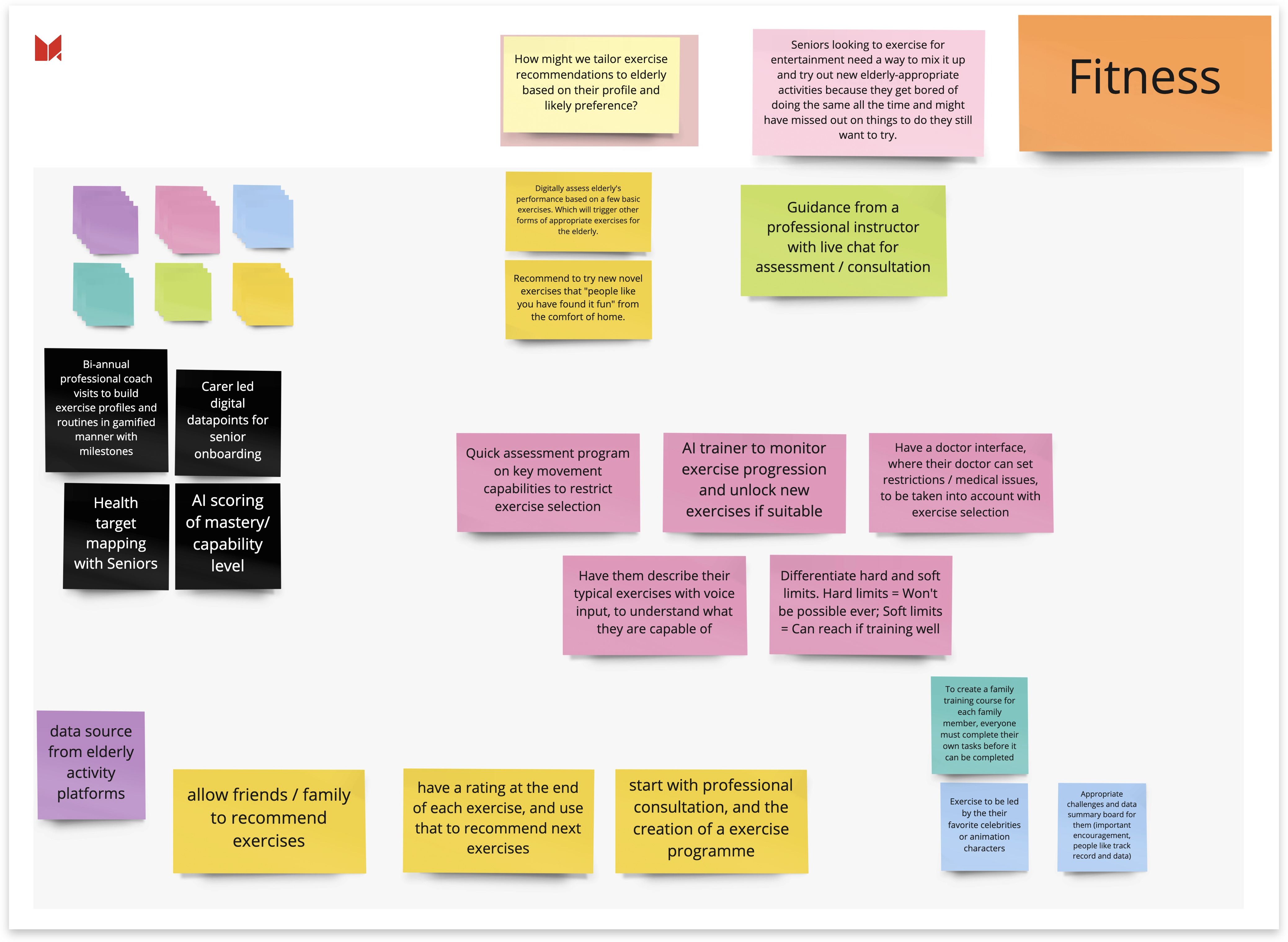 After using some of the ideation tools, you will end up with many ideas on the board. Build clusters with overlapping ideas or similar themes. By combining different ideas, you can develop new, more powerful concepts which can then be voted on and prioritised to move into prototyping.