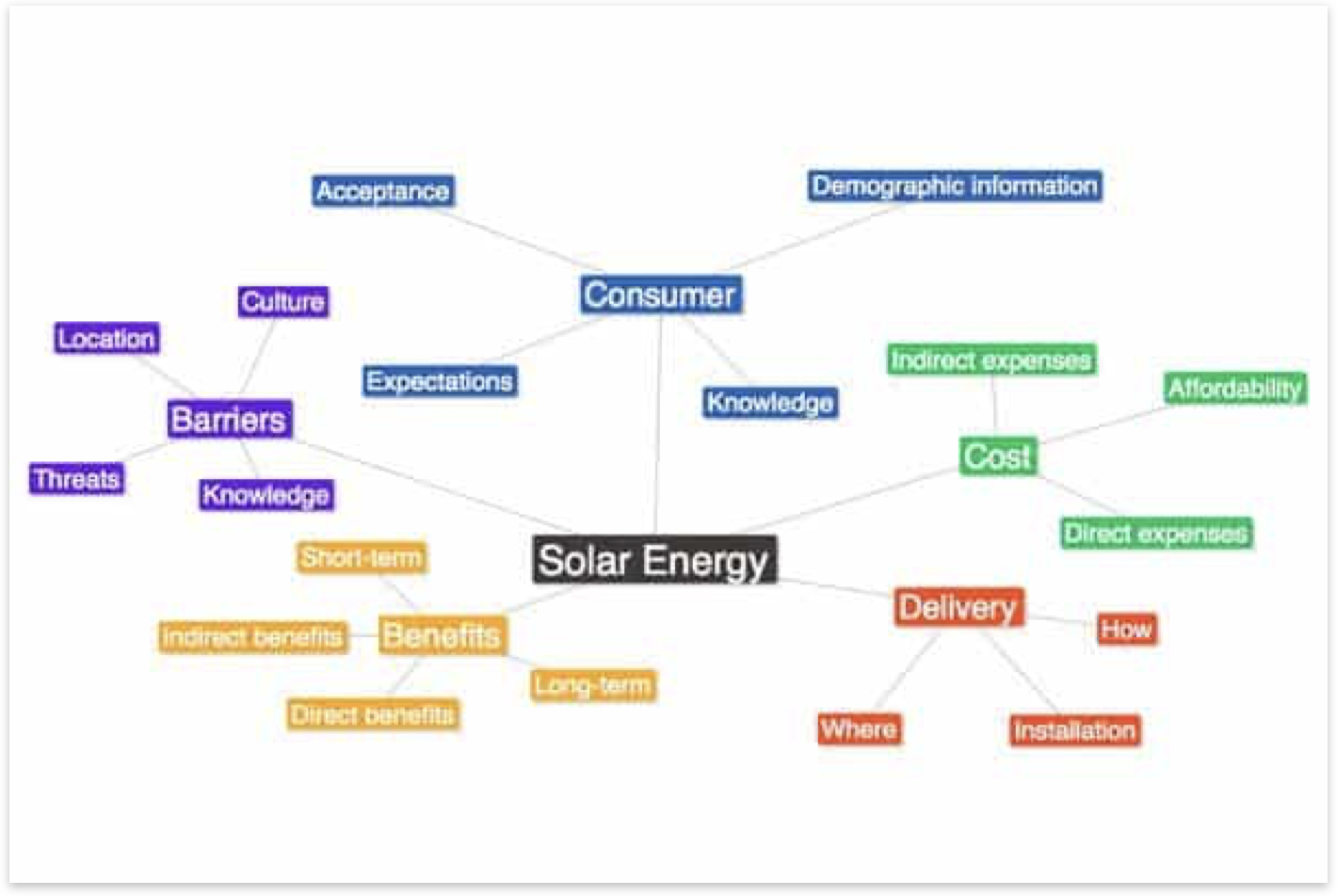 Use a Mind Map whenever your project needs to organise information to understand better what you have achieved in your ideation. Instead of jumping straight to far-fetched ideas, you can build clusters related to your main topic and then spin thoughts further.
