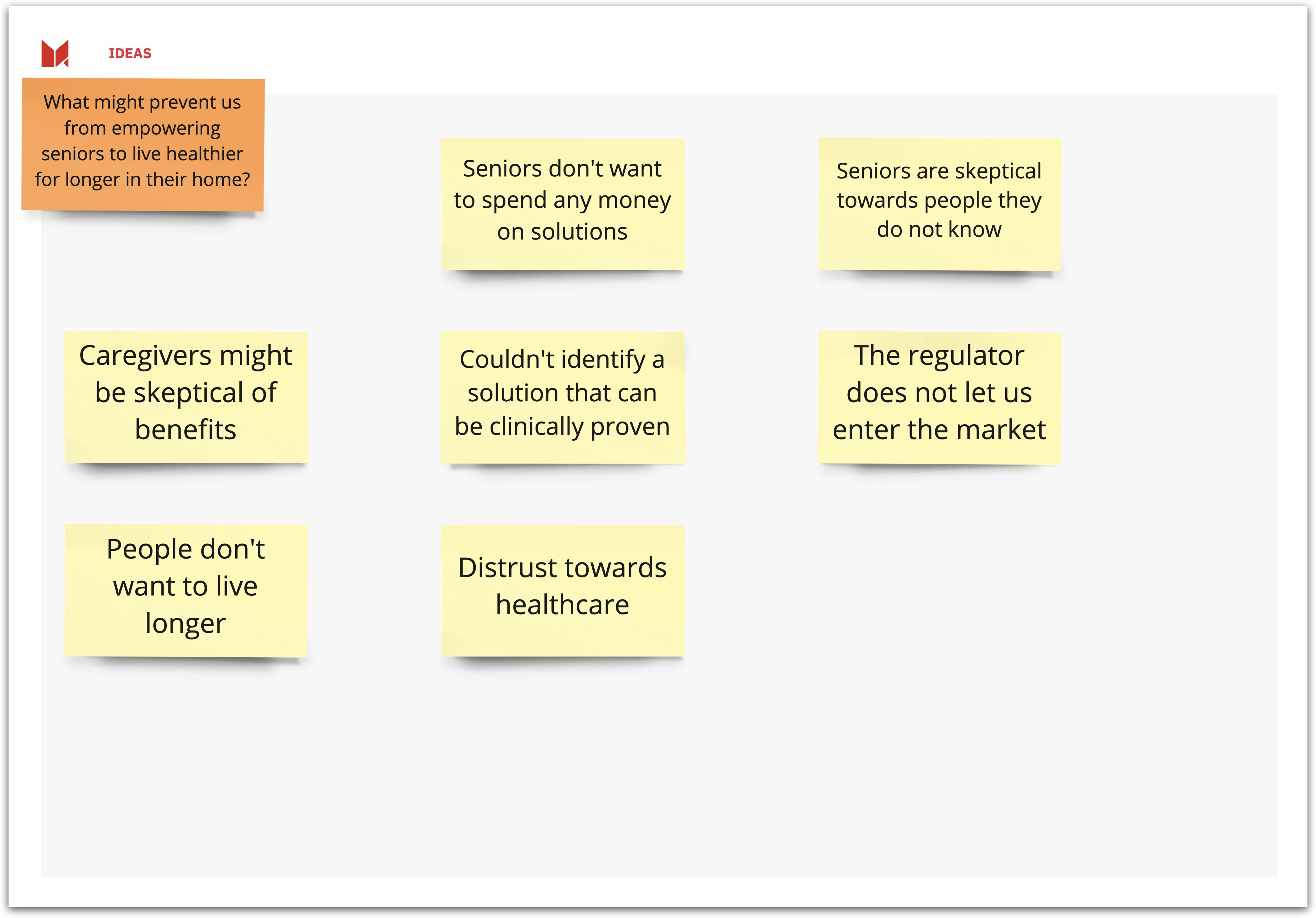 Insight Statements derived from your research are the basis for your ideation activity. Have them ready and ask the participants to ideate around these statements.