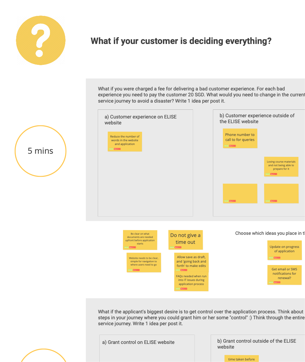 Instead of generating ideas only within your project team, consider running a co-creation session that involves real customers. By involving and empowering those you are designing for in the ideation process, you will likely increase your service's adoption and satisfaction rates and gain valuable insights.