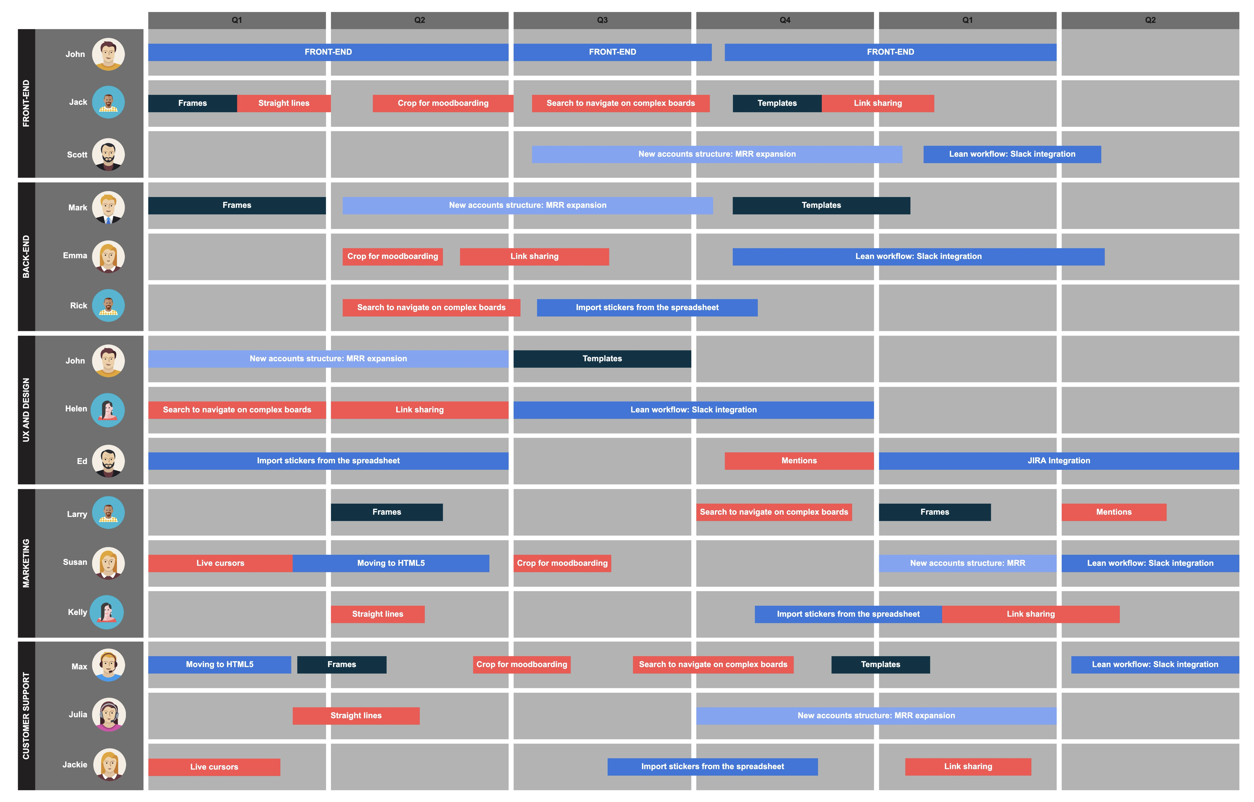 Fill in a 4Q Roadmap Template by creating a swim lane for each work