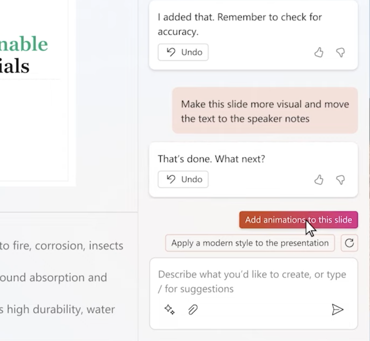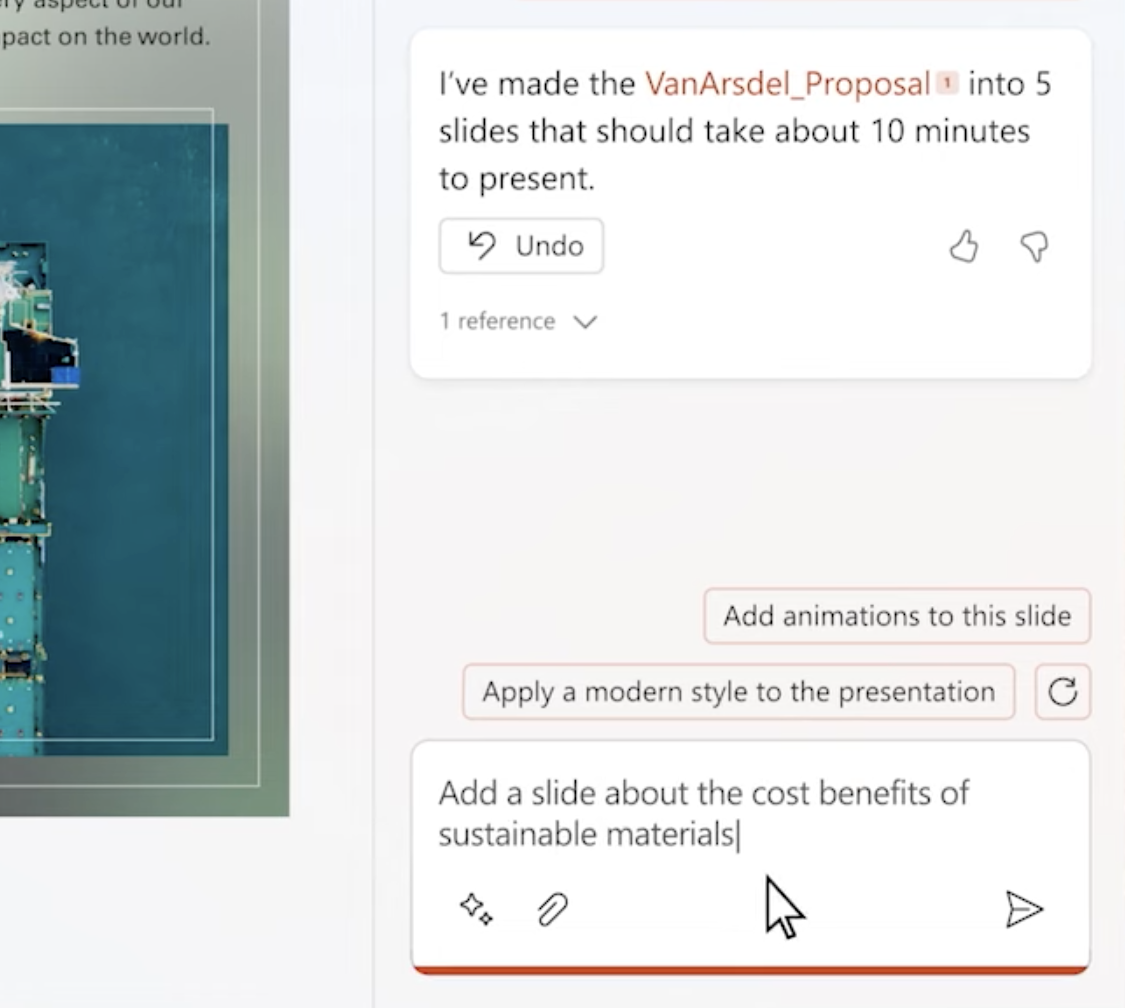 Microsoft Copilot is an AI-powered tool that can help you create a pitch deck by providing suggestions for the content of each slide. It can also help you with formatting, design, and layout of the pitch deck . You can use Copilot in Microsoft Teams, Outlook, Word, Excel, and PowerPoint.
